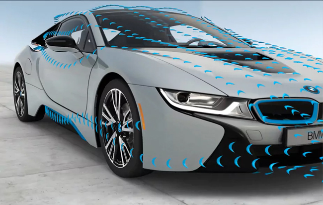 From front to back, the BMW i8 is dedicated to reducing drag. The streamflow design of the vehicle’s rear wing provides significant downforce all the way up to its top speed of 155 mph. EfficientDynamic technology allows vents to open and close to offer cooling, further reduce drag coefficient, and improve the vehicle’s overall aerodynamics while the front Air Curtains channel airflow through the back vents to cool the TwinPower Turbo 3-cylinder engine.