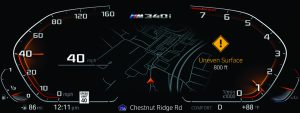 On compatible vehicles, the Uneven Road Surface feature will be automatically added and activated at no additional cost. The ability to turn the feature on or off will be available from the main menu in the iDrive screen under the “Apps” tab.