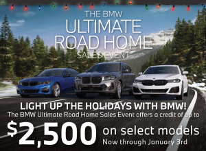 The BMW Ultimate Road Home Sales Event offers a credit of up to $2,500 on select models