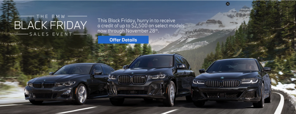 The BMW Ultimate Road Home Sales Event offers a credit of up to $2,500 on select BMW Models now through November 30.