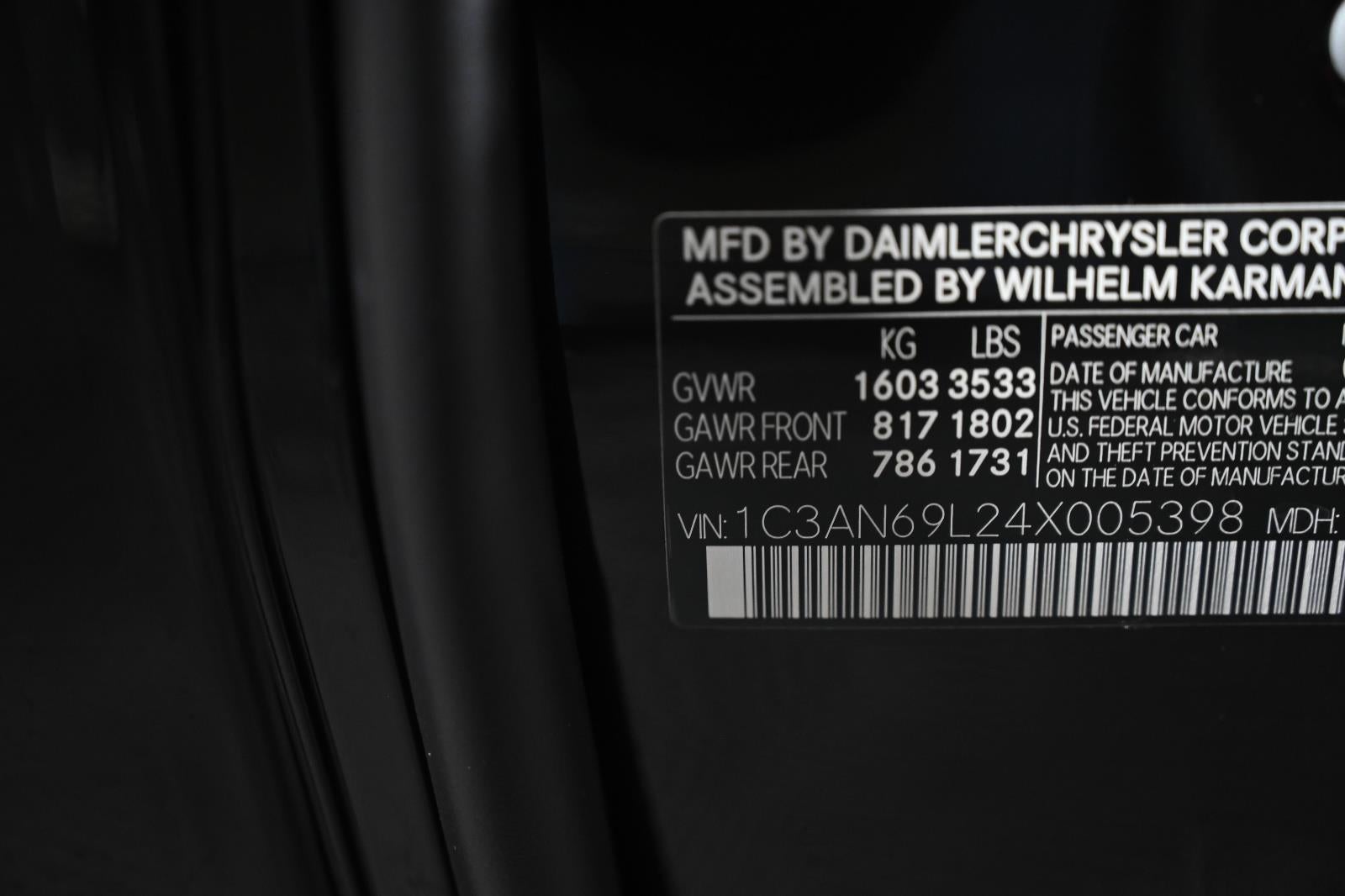 When you choose this Black 2004 Chrysler Crossfire with 44,965 miles, you are not just buying a used vehicle - you are investing in quality, reliability and peace of mind. Our clientele depend on us for Transparent Pricing, Convenience and, most importantly, Customer FIRST Service!
