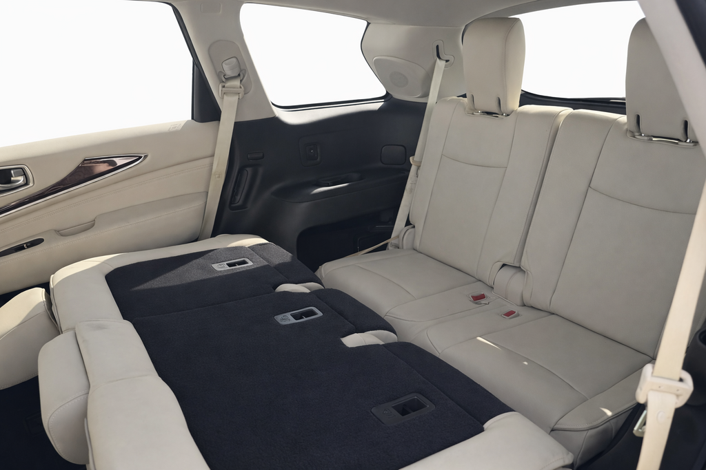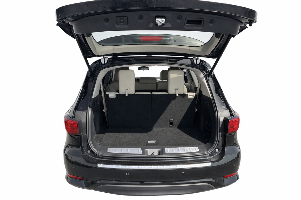 *Navigation*, *Bluetooth®*, *Power Sunroof/Moonroof*, *Active Cruise Control*, *Heated & Cooled Front Seats*, *Rear View Camera*, *SIRUIS Satellite Radio*, *Blind Spot Sensors*, 13 Speakers, 1st & 2nd Row Unique Hour Glass Seat Quilting, 2nd & 3rd Row Moonroof w/Power Rear Sunshade, Active Trace Control, Advanced Climate Control System, Alloy wheels, AM/FM radio: SiriusXM, Around View Monitor w/Moving Object Detection, Auto Side Dimming Mirrors, Backup Collision Intervention (BCI), Blind Spot Intervention (BSI) System, Bose Cabin Surround Sound System, Climate-Controlled Front Seats, Cross Bars, Distance Control Assist, ECO Pedal, Essential Package, Front & Rear Sonar Sensors (4FR/4RR), Front & Rear Sonar System (2FR/2RR), Front Pre-Crash Seatbelts, Heated 2nd-Row Seats, High Beam Assist, Illuminated Kick Plates (IKP), INFINITI InTouch w/Navigation & InTouch Services, Intelligent Cruise Control (Full-Speed Range), Lane Departure Prevention (LDP), Lane Departure Warning System, Leather-Appointed Seat Trim, Maple Interior Accents, Memory seat, Motion Activated Liftgate, Power driver seat, Power Return 3rd Row Seat Back, ProACTIVE Package, Rain-Sensing Front Windshield Wipers, Sensory Package, Voice Recognition for Navigation Functions, Wheels: 20 15-Spoke Aluminum-Alloy.