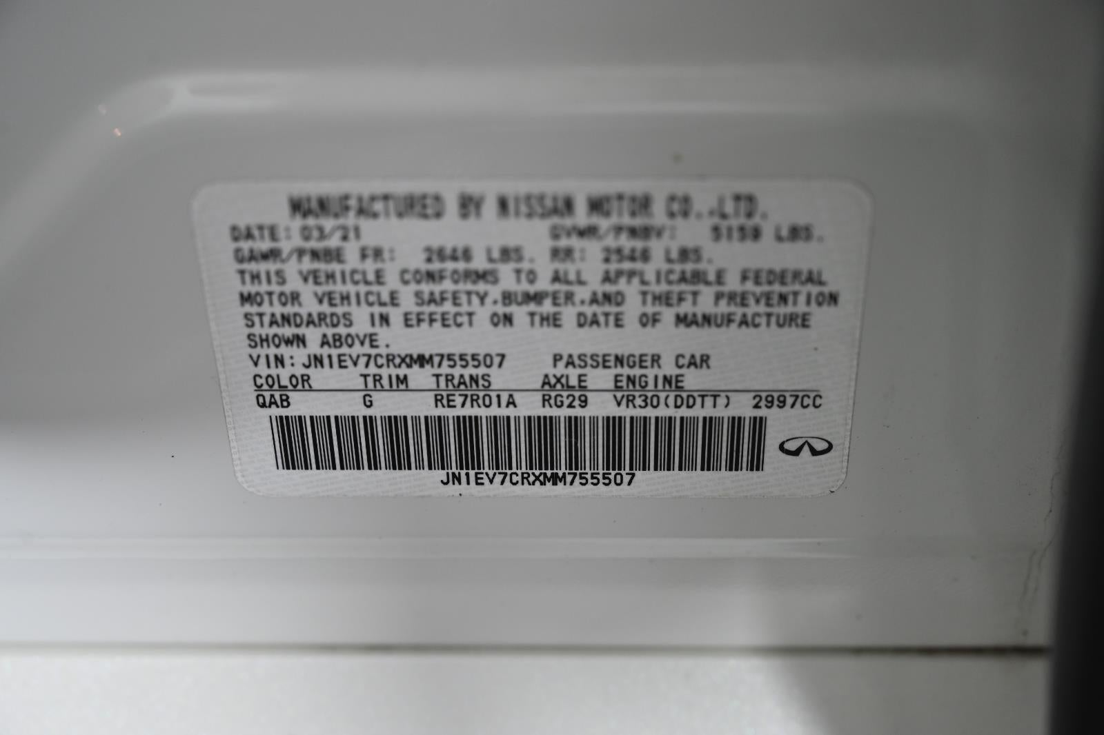 MAJESTIC WHITE, GRAPHITE, LEATHER SEATING SURFACES, [C03] 50 STATE EMISSIONS, [E10] PREMIUM PAINT, [M92] CARGO PACKAGE, [B92] SPLASH GUARDS, [N92] INFINITI RADIANT ILLUMINATED KICK PLATES, [N93] INFINITI RADIANT WELCOME LIGHTING, [H92] REAR USB CHARGING PORTS, [S55] LITERATURE KIT