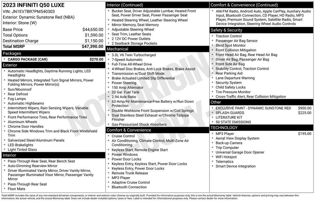 - Vehicle Name: INFINITI Q50